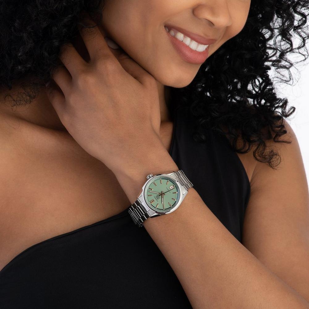 - Green dial with 18ct 5N rose gold-plated hands and hour markers